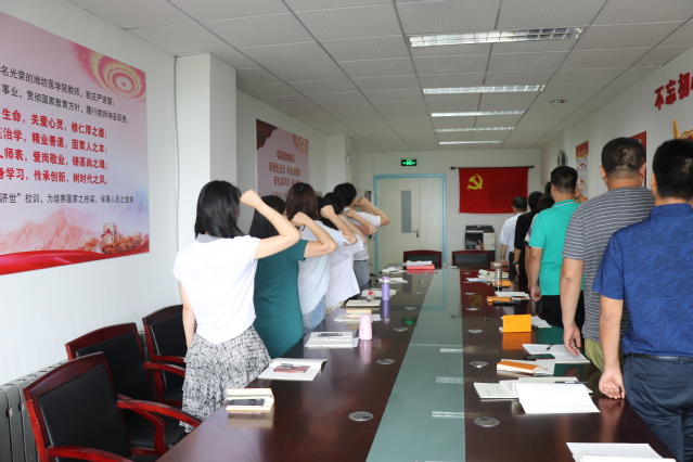 最后,全体党员面对党旗,高举右拳,重温入党誓词,重温当年入党的决心和信念。