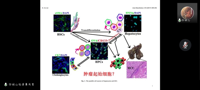 纪洪杰博士主要从研究背景、研究结果、意义等方面进行介绍,重点提出肝脏中的肿瘤干细胞与肝癌发生发展密切相关。基于前期对组蛋白去乙酰化酶3(HDAC3)在肝癌发生发展中的分子机制的研究,进一步展开HCC细胞来源的相关探究,并以图解的方式讲解了肝脏肿瘤起始细胞的来源,HDAC3在转录调控中的作用等相关内容。通过建立HDAC3肝脏特异性敲基因小鼠,采用小鼠2/3肝切除手术,利用免疫组化、免疫荧光染色等技术,结合小鼠肝癌转录组测序分析,构建CK19-Lacz腺病毒载体,并进一步通过肝祖细胞(HPC)移植实验,最终证实HDAC3-HPCs作为肿瘤起始细胞参与小鼠HCC形成。